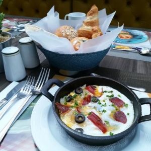 “La oferta de los desayunos realmente es amplia y cómoda para todas las personas. El buffet consta de una variedad de quesos, ensaladas, panes dulces y de sal, acompañados de gran variedad de huevos, calentados, tocinetas, salchichas, frutas, cereales y yogures”.